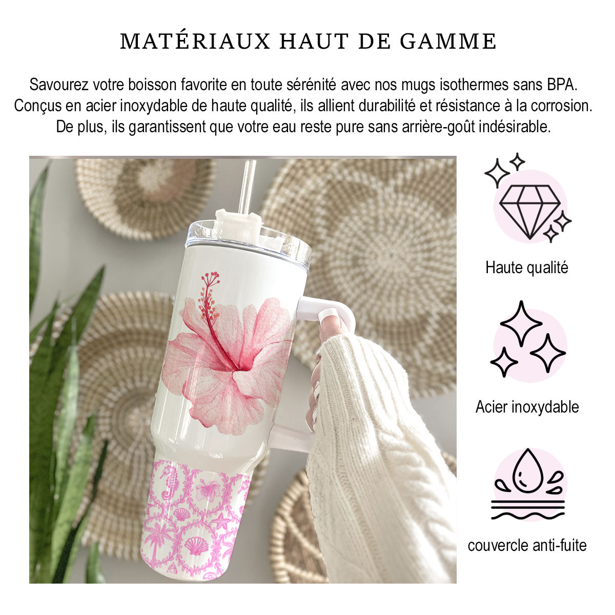 Que vous preniez le train, que vous alliez au bureau ou que vous vous rendiez à la plage, notre mug isotherme assure que vos boissons restent à la température parfaite en toutes circonstances.