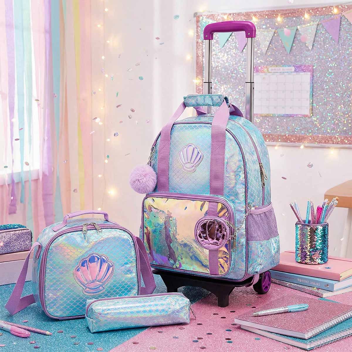 Ce cartable à roulettes thème sirène combine confort, style et fonctionnalité. Grâce à ses roulettes amovibles, il s’adapte à toutes les situations : on le tire quand il est chargé, on le porte sur le dos quand c’est plus pratique.