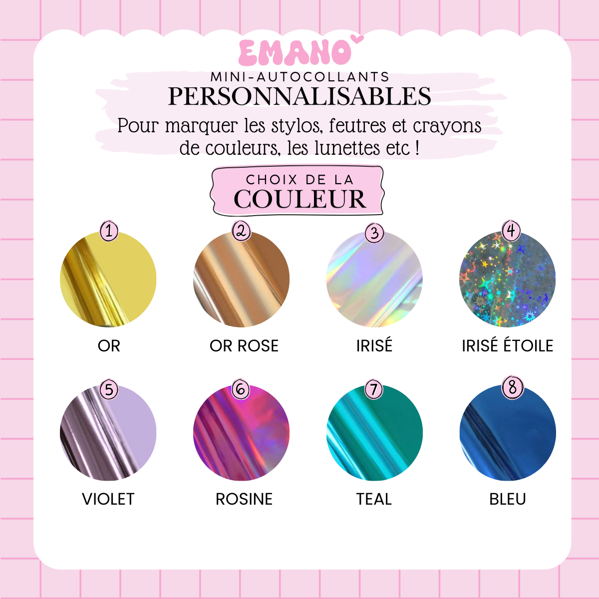 Les stickers brillants personnalisables Emano sont parfaits pour ceux qui aiment se démarquer ! Conçus avec des matériaux de haute qualité, nos stickers offrent une finition brillante et résistante, idéale pour customiser tous types de fournitures scolaires.