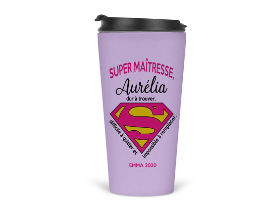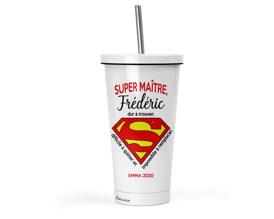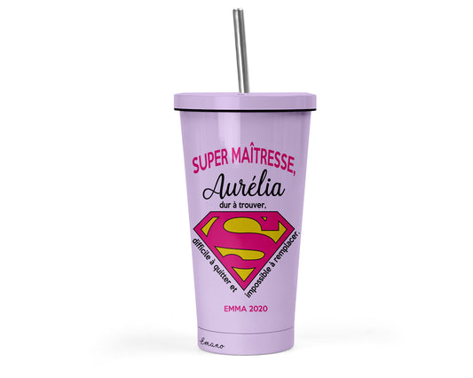 Verre isotherme super héros personnalisé ★ Maîtresse/ Nounou/ ATSEM/ directrice ...