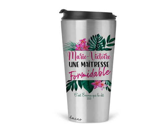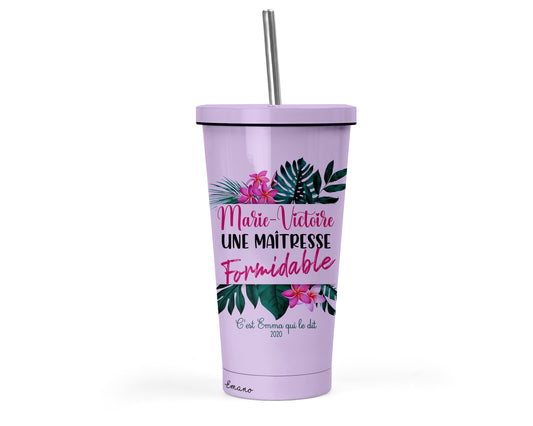 Verre isotherme tropical personnalisé ★ Maîtresse/ Nounou/ ATSEM/ directrice ...