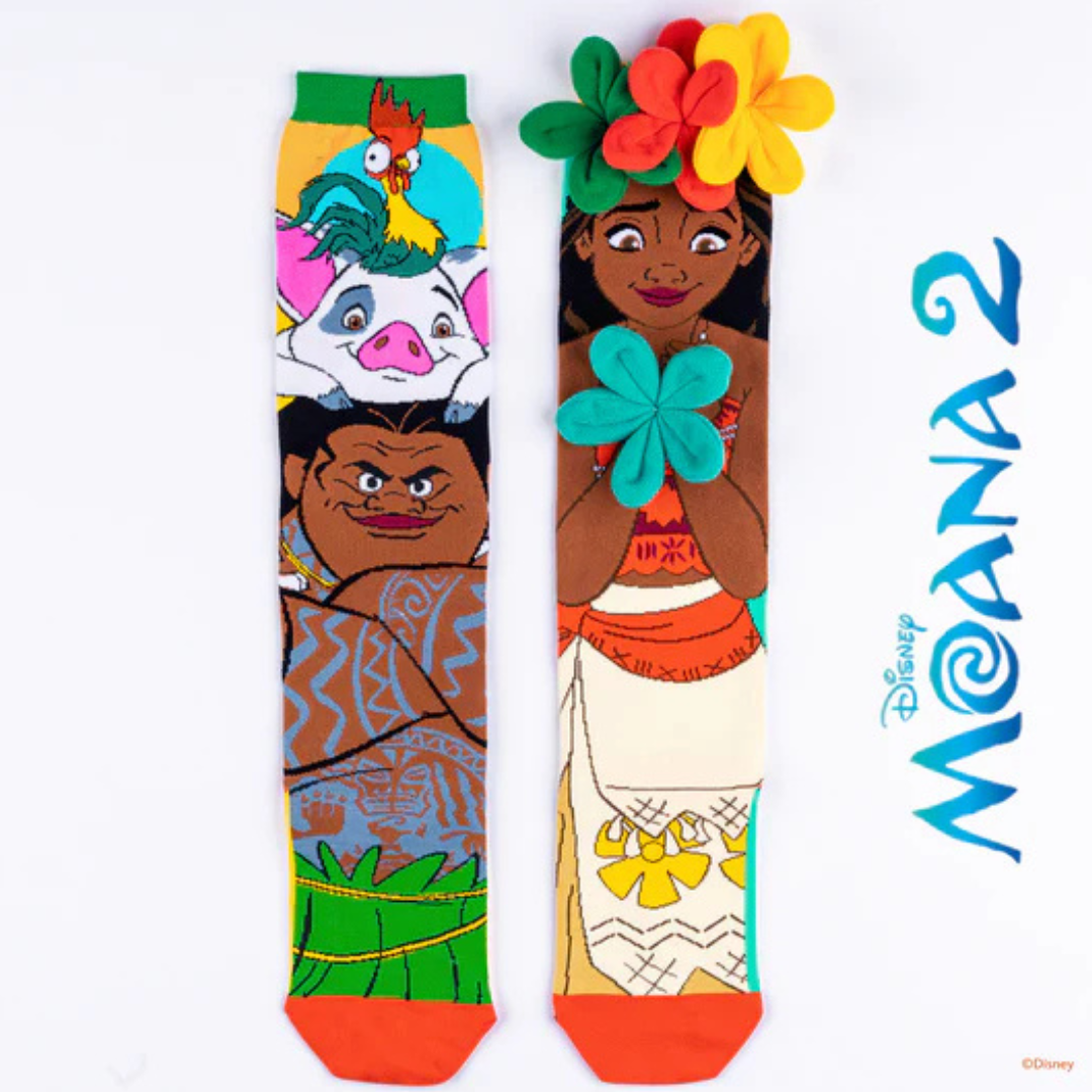 Apportez l'esprit de Vaiana à votre garde-robe avec ces chaussettes dépareillées vibrantes mettant en vedette Vaiana, Maui, Hei Hei et Pua ! 🏝️