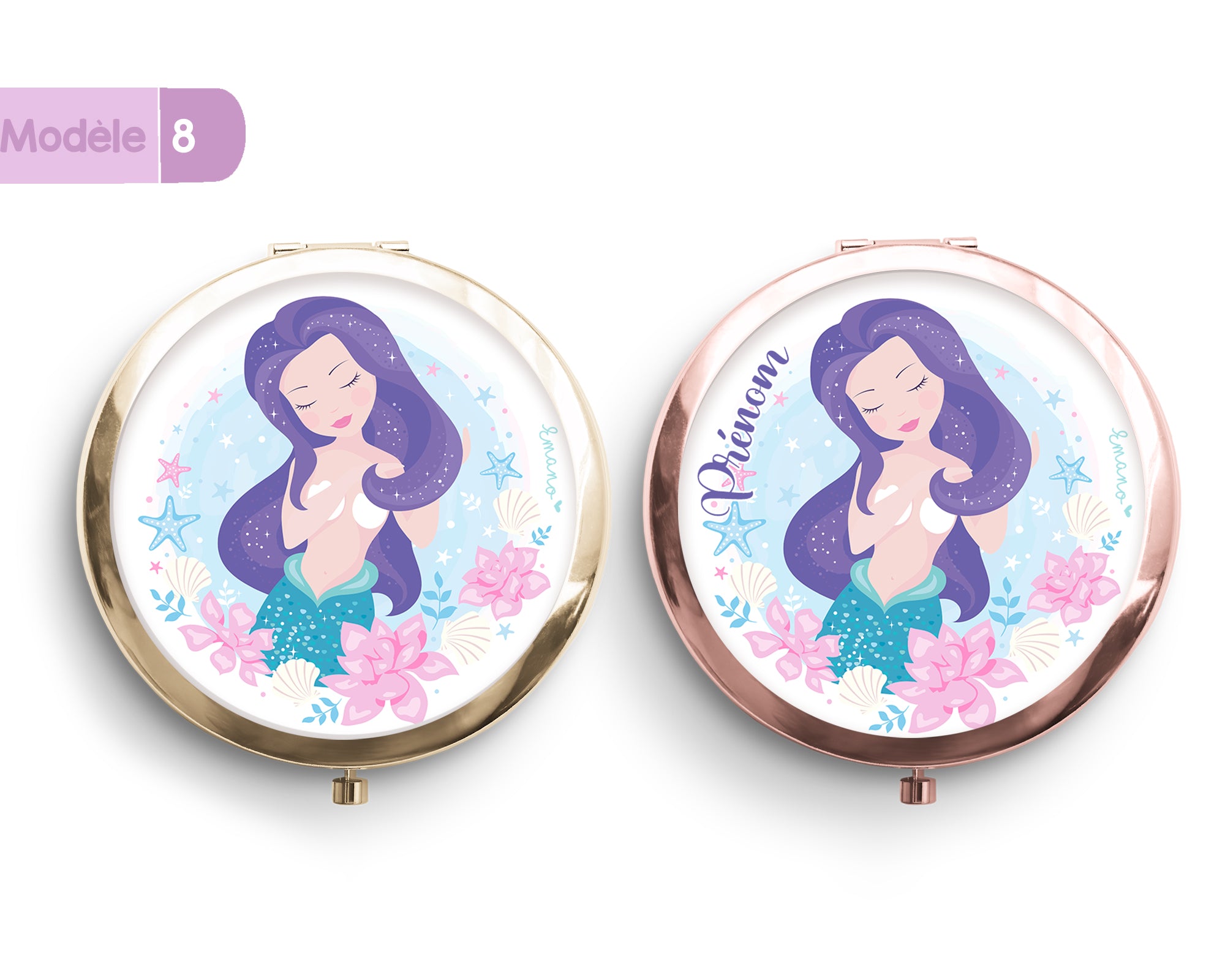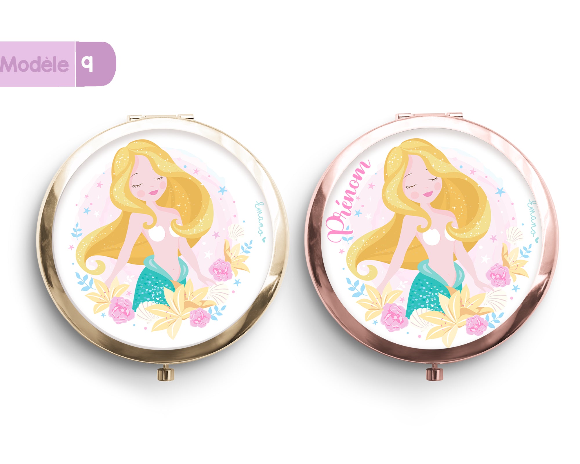 Idéal pour remercier vos demoiselles d'honneur, pour un anniversaire ou bien une maîtresse, ce miroir personnalisé avec sa touche or rose fera des heureuses.