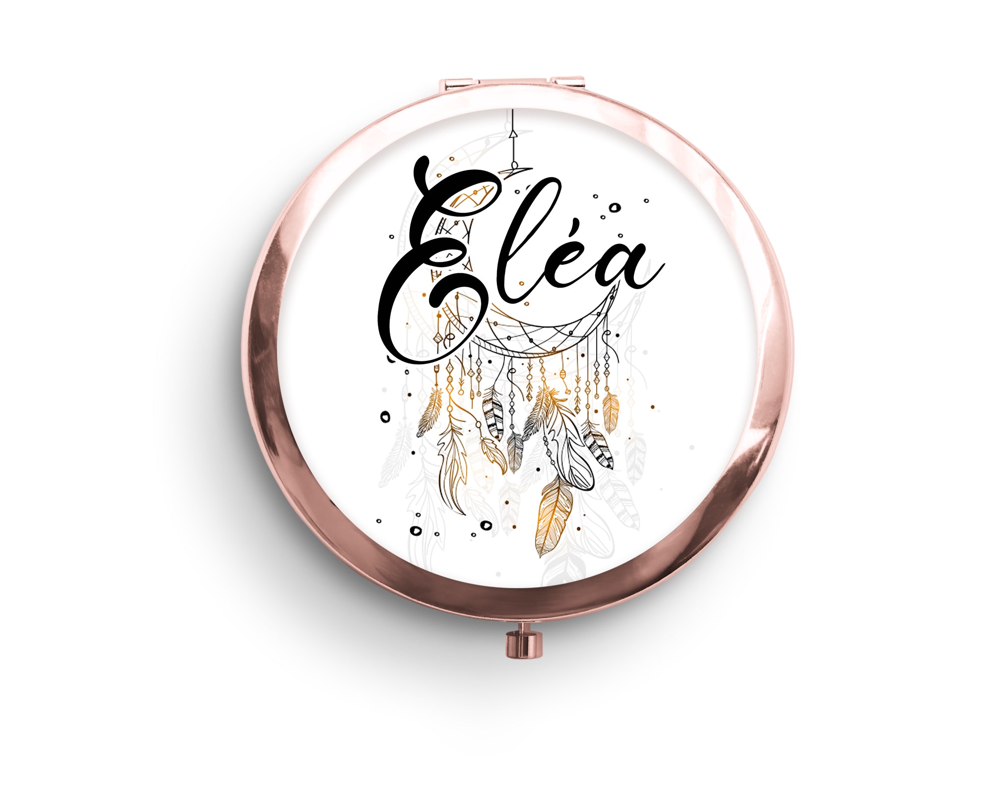 Idéal pour remercier vos demoiselles d'honneur, pour un anniversaire ou bien une maîtresse, ce miroir personnalisé avec sa touche or rose fera des heureuses.