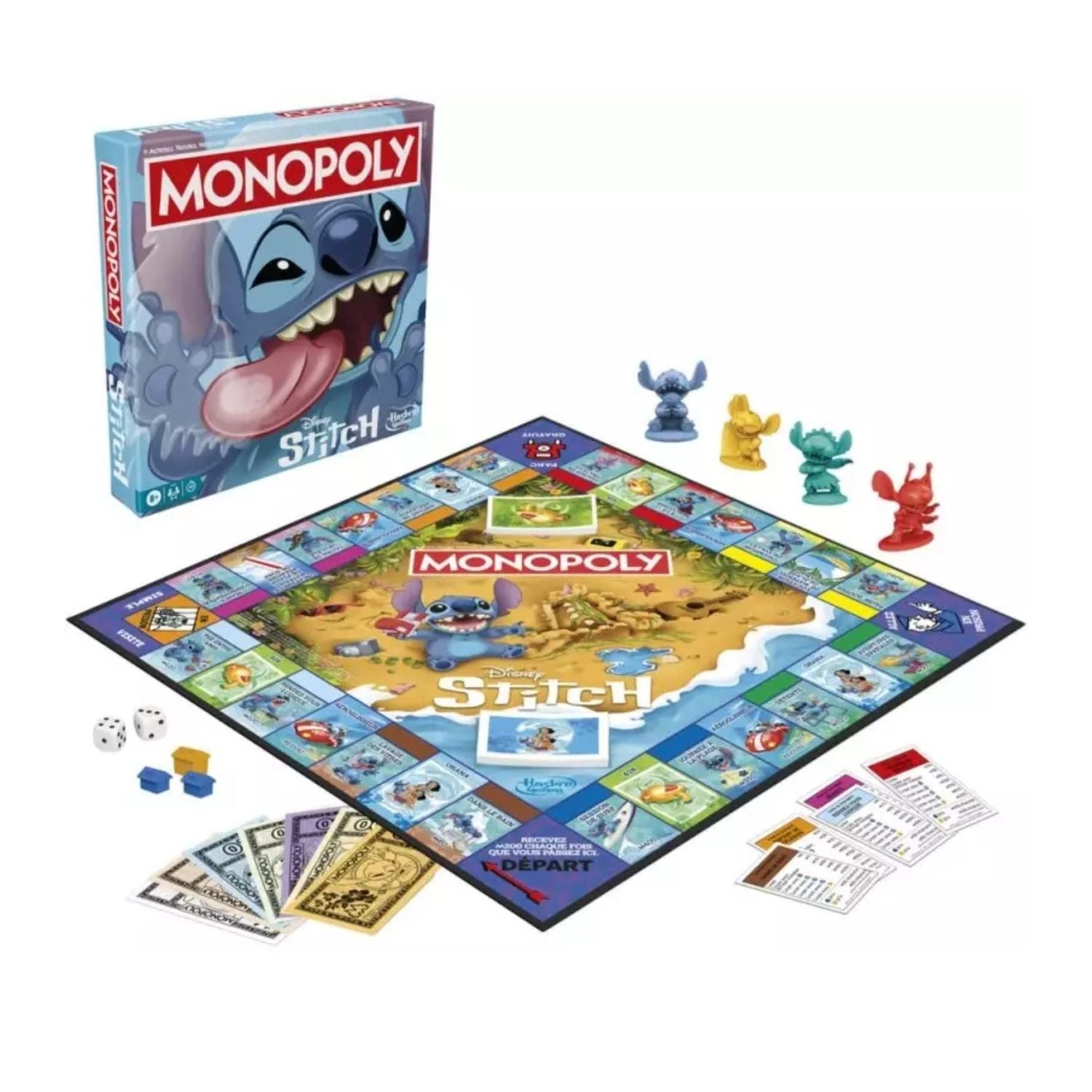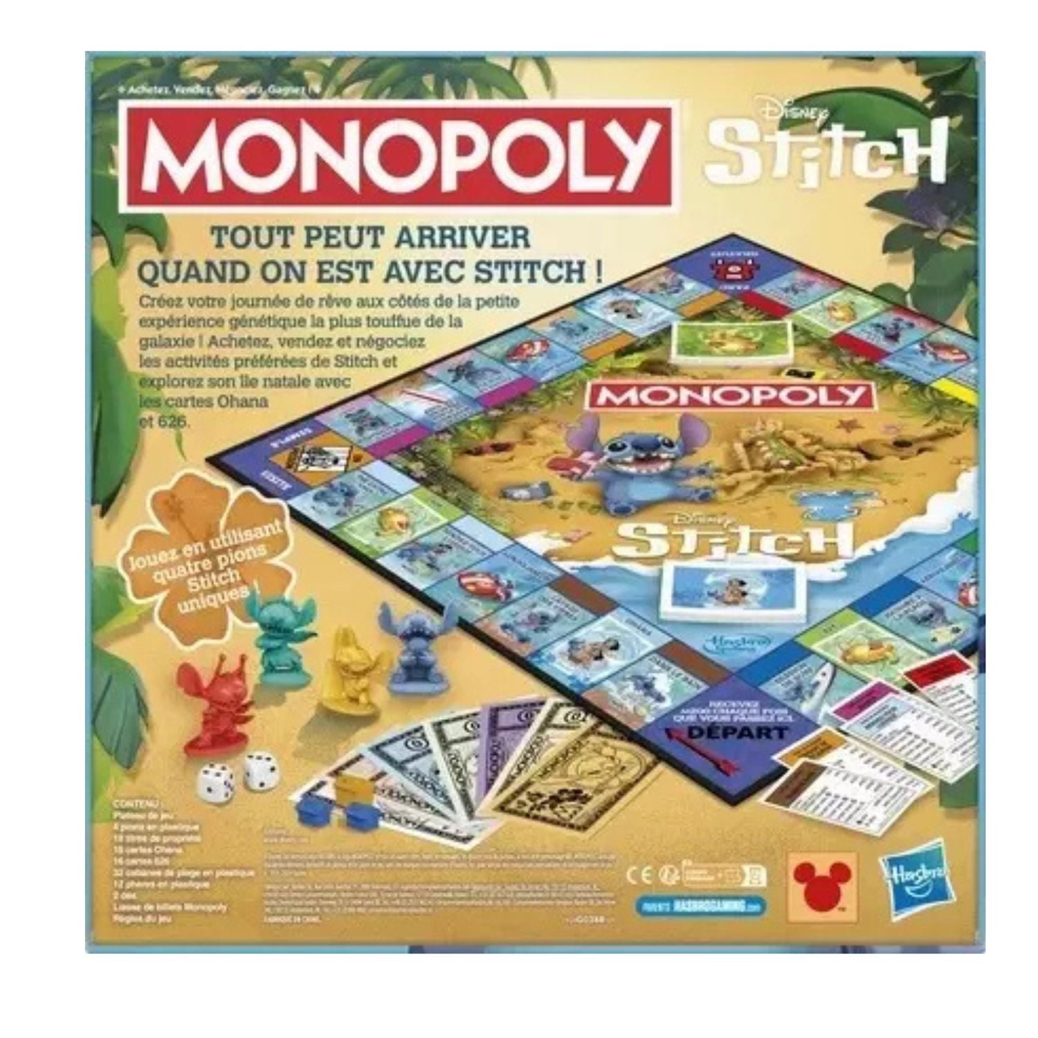 Redécouvrez le célèbre jeu Monopoly dans une version totalement revisitée aux couleurs de l’univers espiègle de Stitch 🌺 ! Dans cette édition spéciale, oubliez les propriétés classiques : ici, vous achetez les activités préférées de Stitch et des objets de plage typiquement hawaïens.