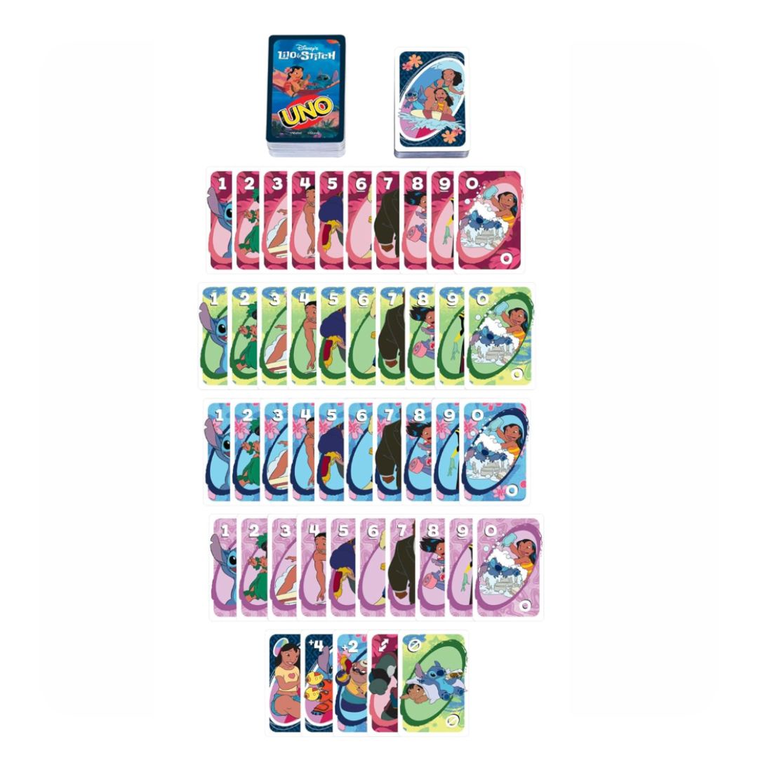 Le UNO Stitch revisite le jeu classique avec des illustrations adorables de Lilo, Stitch et leurs amis, pour des parties encore plus fun en famille ou entre amis.